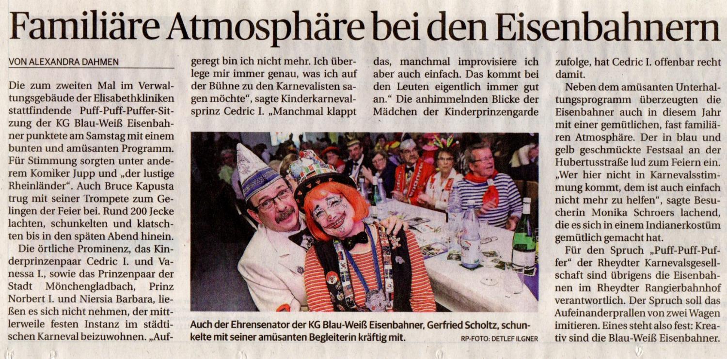 (C) 2011 Karnevalsgesellschaft Blau-Weiss EisenbahnerWebdesign und Webadministration Hans WeyersAlle Bilder auf dieser Homepage sind urheberrechtlich geschütztVolldampfmitPuff-Puff-PufferSamstag 15.02.2020, Einlaß 18.00 Uhr, Beginn 20.00 UhrVerwaltungsgebäude Städtische KlinikenHubertusstr. 100Eingang Wildstraße41239 MönchengladbachWo bekomme ich Karten?Reservierung / BestellungTelefon 02161-631864MachenSie Pause vom Alltag.StärkenSie sich am Buffet.ErlebenSie die Künstler hautnah.HabenSie einen schönen Abend.EserwartetSieein SpitzenprogrammmitKünstlerndesrheinischen Karnevals.Marcus MagnusChristian PapeKleinstadtrokkerHeddemer DreigestirnEt Zweigestirn